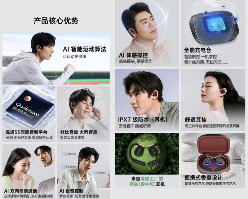 Imagine clear and rhythmic music being transmitted to the ear through headphones, blending with the surrounding environment, improving exercise safety while forgetting the fatigue caused by exercise. Whether running outdoors or lifting iron indoors, the master level sound quality experience will provide users with immersive assistance, and the six AI functions can provide users with "nanny like" attentive service, allowing users to maintain a high level of focus and enthusiasm when facing heavy equipment and repetitive movements.